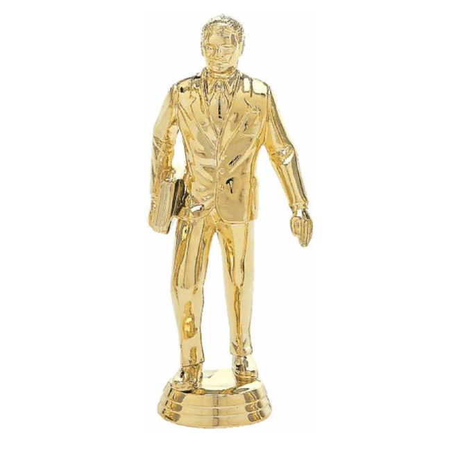 This trophy features a gold figure on a base of your choosing. This trophy includes a gold aluminum plate for engraving.